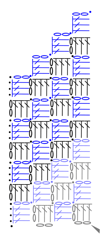 - The pattern is worked with the diagonal box stitch (c2c) in double crochet stitches: one square refers to a ch 2 + 3 dc stitches.