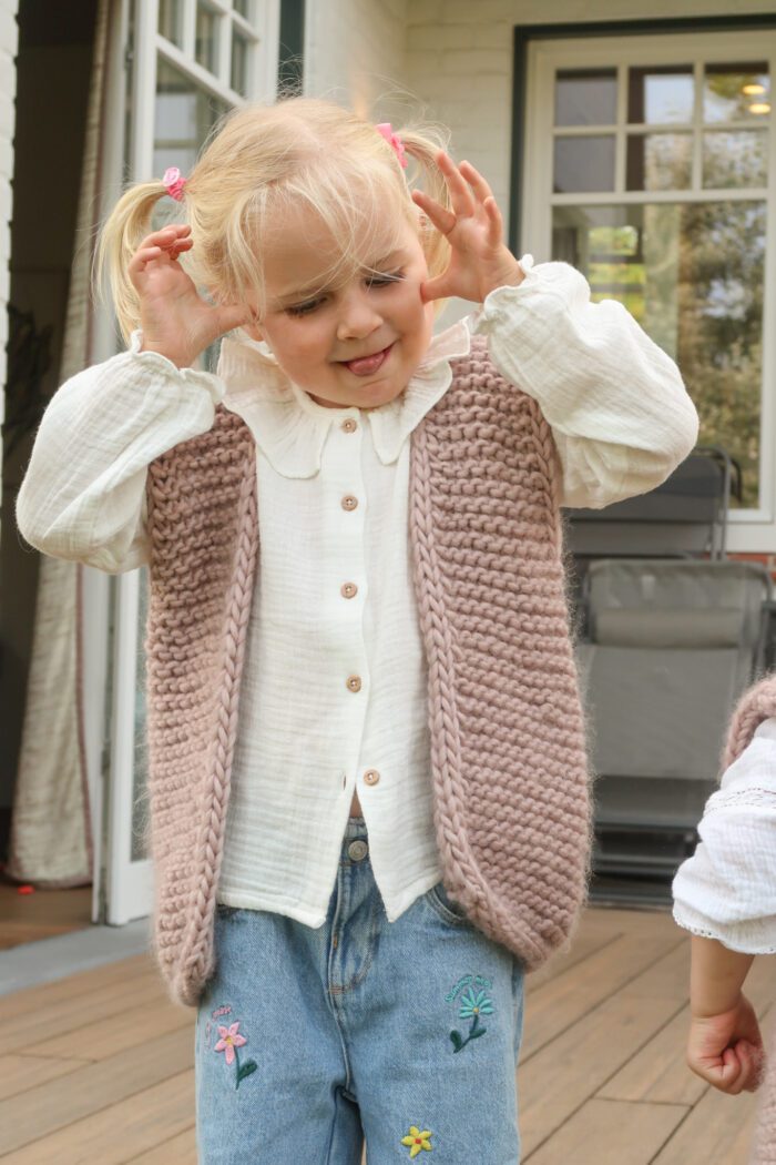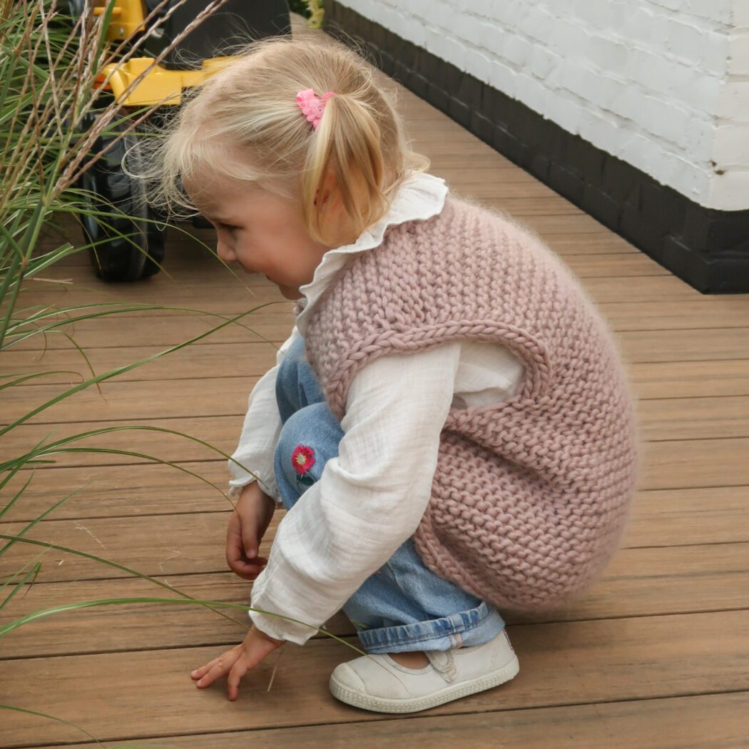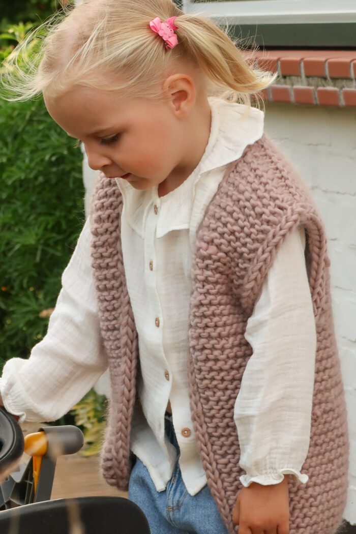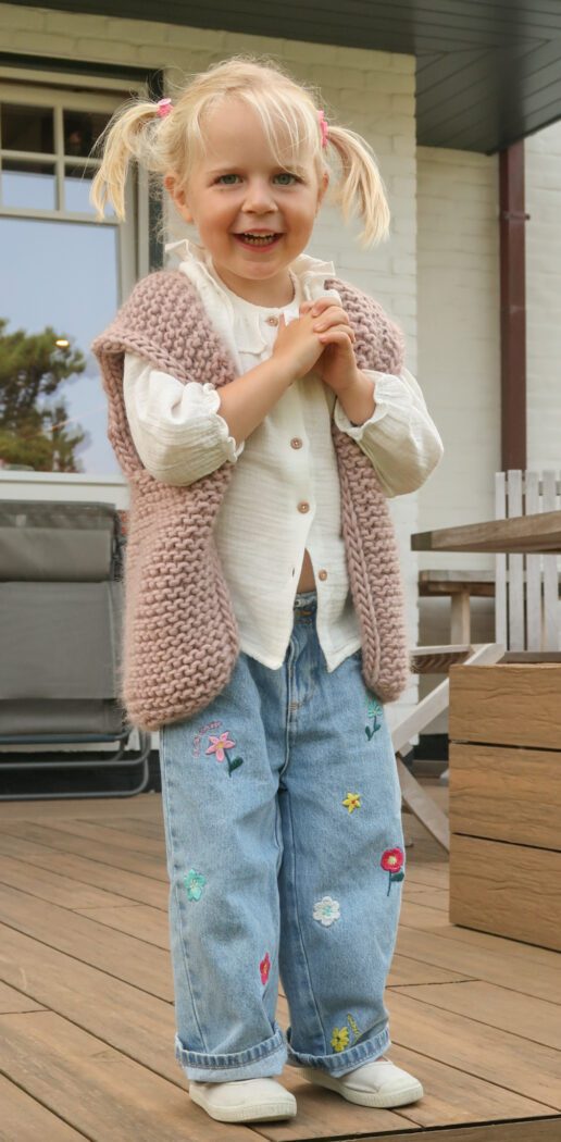 With its relaxed fit, generous armholes, and clean I-cord edges, this vest is made for real life with kids — easy to pull on, comfy to wear, and perfect for layering over long sleeves or dresses. Knit in super bulky yarn, it works up quickly and keeps things simple without ever feeling basic.