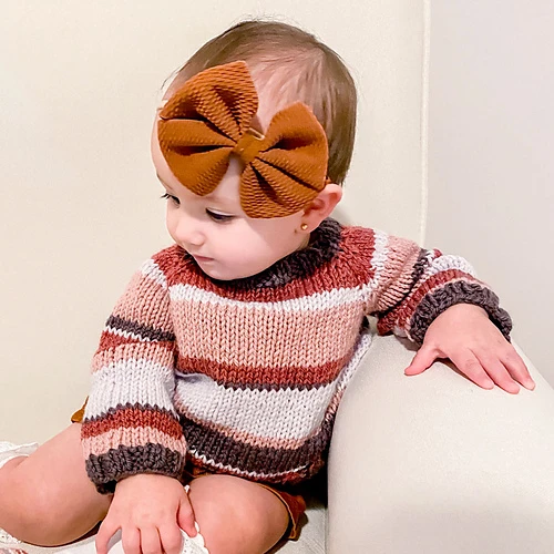 This sweater is a cute classic raglan baby sweater with irregular stripes that remind me of the growth