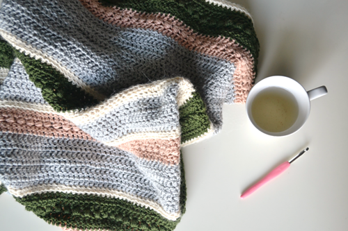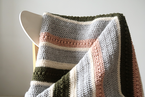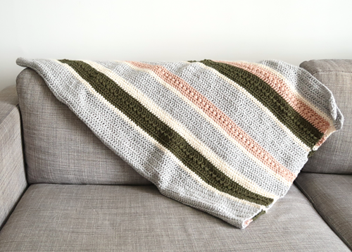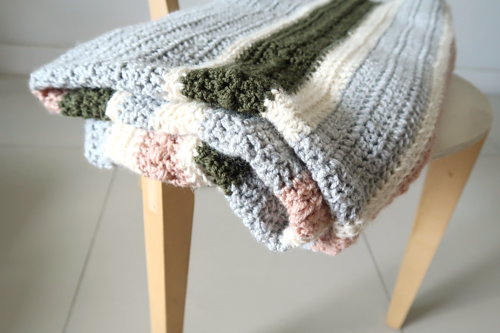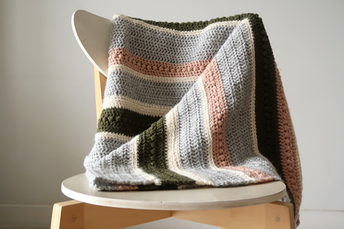 The Herfst Blanket is an easy crochet blanket pattern that is sure to elevate your home decor. The irregular stripes and cozy texture make it the perfect throw blanket for curling up in front of the fireplace.