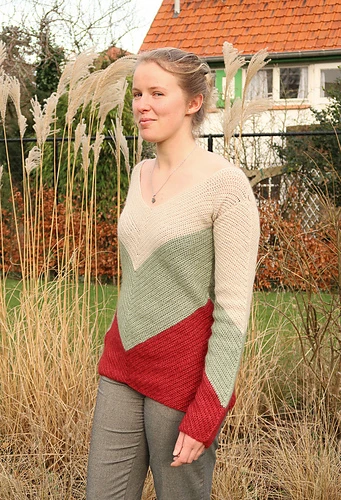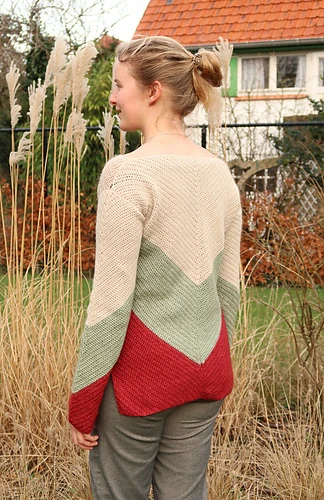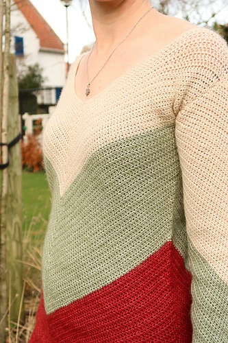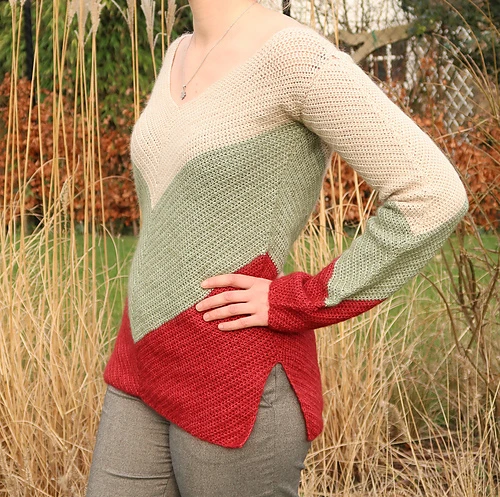The Olivia Sweater is a stunning and simple crochet pattern. It is worked in panels on a bias to form the V-shaped color blocking. It is the perfect sweater to throw on and instantly look put together.