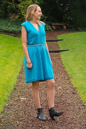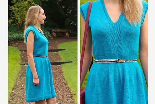 • The top is worked in 2 panels sewed together and the skirt is then knit in the round.