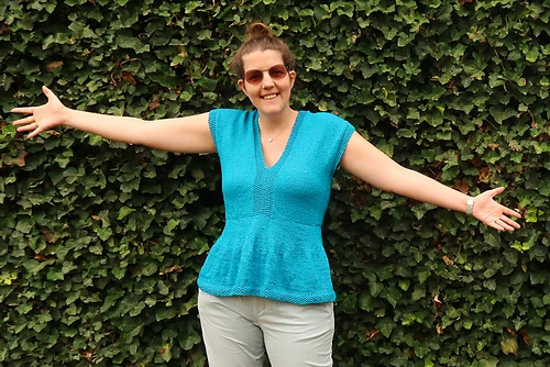 Knit using a cotton-blend yarn, you won’t have to worry about your yarn splitting while you work, and it comes in 44 colors so you can have fun with a rainbow of choices. The result is a piece so comfortable, you’ll want to wear the Tenngol Top every day!